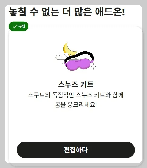 그래서 남은 바우처로 스쿠트 플렉스(부가서비스 옵션)를 추가해봤습니다.