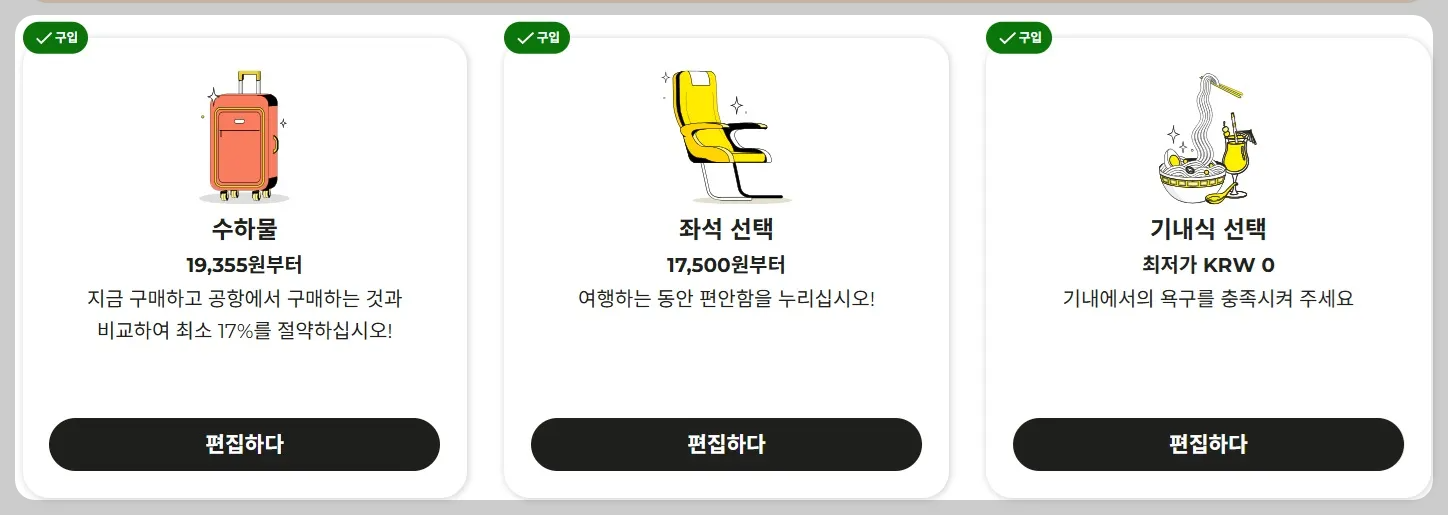 남은 바우처로 기내식·수하물·좌석·담요까지 풀옵션 예약 🎁