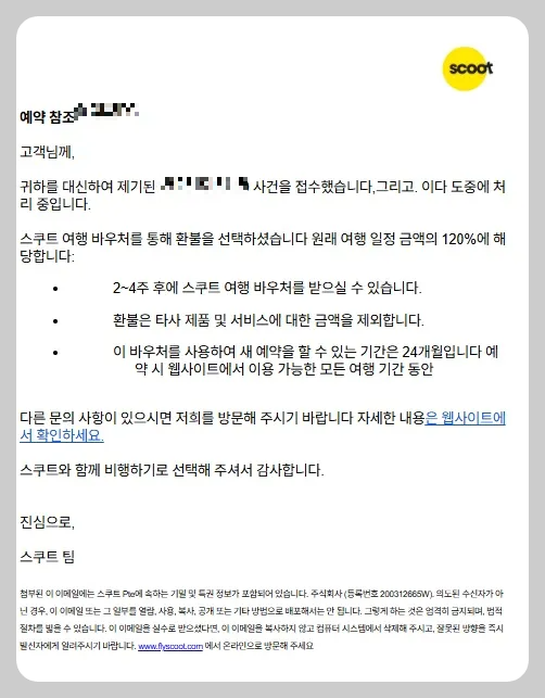 스쿠트항공 일정(노선) 변경으로 취소, 환불, 바우처! 내돈내산 후기 및 꿀팁✈️