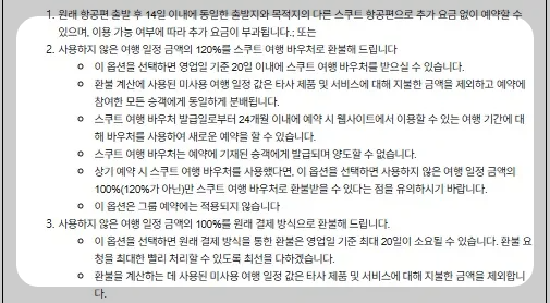 - 2️⃣ 항공권 금액의 120% 상당 스쿠트 바우처로 환불
